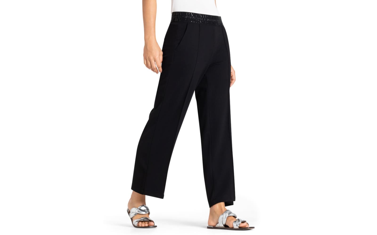 Estos pantalones de pierna ancha y caída fluida representan la elegancia moderna, ofreciendo una silueta sofisticada que alarga visualmente las piernas con total comodidad.